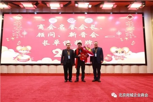 给名誉顾问-北京淅川企业商会杜奎敬会长授牌北京宛城企业商会王朋成会长表示:过去一年,在宛城区和卧龙区投了4个项目,真正感受到家乡招商和营商环境的变化,招商局和商务局及政府等领导细心对接,各项服务非常到位,也希望大家也回家走动了解,有资源多多投资回报家乡。