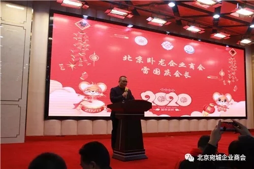 北京卧龙企业商会雷国庆会长致辞多少欢歌随往事,万千喜事乐今宵,年会晚宴环节由北京卧龙企业商会张兴坤秘书长和张路美女主持。