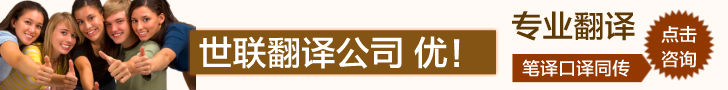 Unitrans世联翻译公司在您身边,离您近的翻译公司,心贴心的专业服务,专业的全球语言翻译与信息解决方案供应商,专业翻译机构品牌。无论在本地,国内还是海外,我们的专业、星级体贴服务,为您的事业加速!世联翻译公司在北京、上海、深圳等国际交往城市设有翻译基地,业务覆盖全国城市。每天有近百万字节的信息和贸易通过世联走向全球!积累了大量政商用户数据,翻译人才库数据,多语种语料库大数据。世联品牌和服务品质已得到政务防务和国际组织、跨国公司和大中型企业等近万用户的认可。 专业翻译公司,北京翻译公司,上海翻译公司,英文翻译,日文翻译,韩语翻译,翻译公司排行榜,翻译公司收费价格表,翻译公司收费标准,翻译公司北京,翻译公司上海。- 上一篇:英语-日语 互译