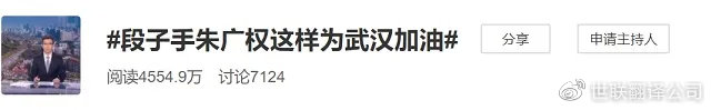 4月1日,话题#段子手朱广权这样为武汉加油#冲上了热搜↓