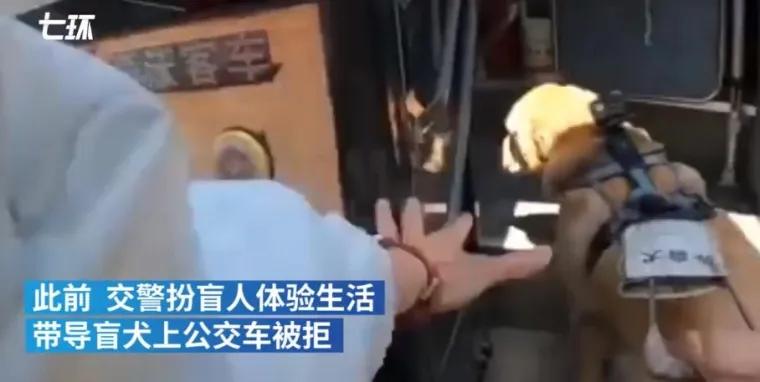 A video showing a traffic police officer pretending to be blind being denied permission to get on a bus with a guide dog has been drawing public attention and has led to heated online discussions about the lack of support and care for the visually impaired.