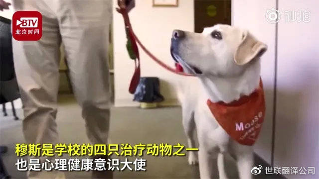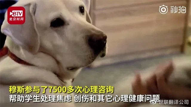 图源:北京时间视频除了足球比赛、社团活动、迎新活动之外,穆斯还会帮助同学们缓解焦虑、创伤等心理健康问题。穆斯的主人特伦特·戴维斯表示,穆斯参加了超过7500次心理咨询,帮助了数以千计学生走出焦虑和心理健康障碍。