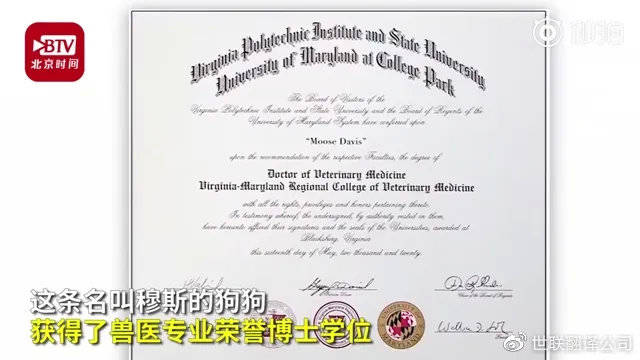 图源:北京时间视频Like most universities, Virginia Tech's College of Veterinary Medicine celebrated the class of 2020 with an online commencement ceremony. But unlike other schools, they included one very good boy in the graduating class: a dog named Moose.