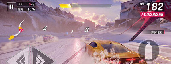 3、狂野飙车8屏幕左侧是减速,如果配合方向控制,可以让车漂移。