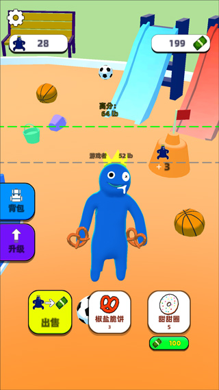 1、彩虹朋友的肚子是一个黑洞,能吞下一切物品,你作为它的好朋友,赶紧开始投喂彩虹朋友,把它喂成一个大胖子