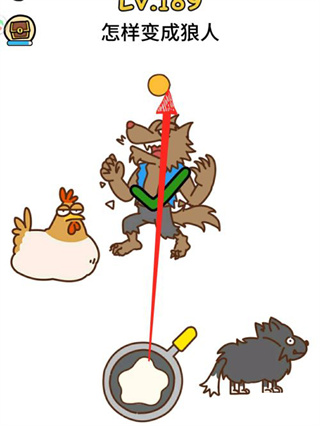 5、最后如下图所示,将蛋黄移动到狼人头上即可过关。
