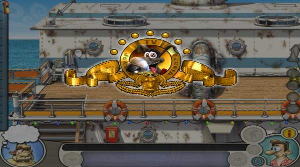 首先等老头离开左下,到左下,拿毯子,直接到右下把毯子铺在舱口上,回左下,还有信号弹要捡;然后等老头离开左上,到左上,等老头离开右中,到右中,捡玻璃碎片,地毯下有密码纸,包里有安眠药,等老头离开右下;到右下,用玻璃碎片把货物架的掉绳割开;到左上等待,等老头离开右中,马上走到右中的楼梯口等待,把握时机,等老头快要中圈套时向下走,走到时老头应该已经离开右下,立即捡起鱼往右上跑;然后上楼梯的时候就选中鱼,然后对左上的花盆使用,使用完后马上往回走,选中右的椅子躲藏(这个一定要快,否则会被老头他妈打);等老头离开右中,老母睡着,马上冲到左下,在水桶上放鱼,拿毛巾,迅速返回右中,再到左上,对脏的玻璃墙用毛巾,然后捡鹦鹉身上的钥匙;回右中,把信号弹装上,到躺椅躲藏;老头被整离开右中,在船长室使用安眠药和密码纸,回到躺椅,恭喜,你通关了。