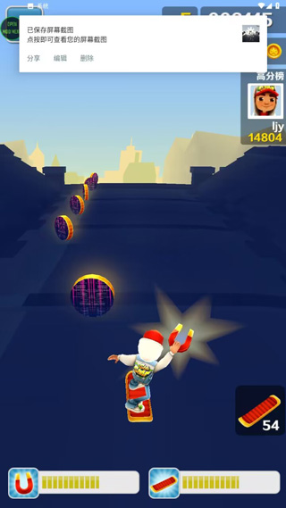2、除了掉落的大量金币外,还有许多种类的道具可供玩家使用,如磁铁、弹簧、飞行背包等,让游戏更加丰富多彩