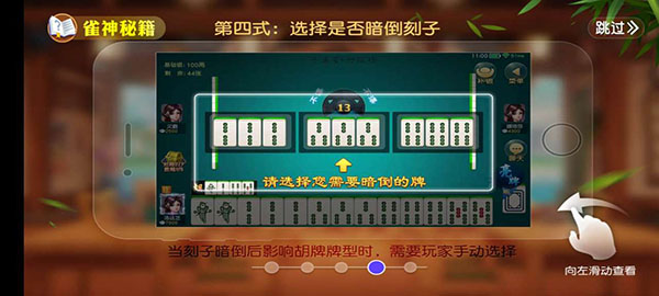 4、暗倒刻子,选择暗倒刻子往往会影响到胡牌的牌型,此时玩家需要手动选择