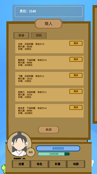 玩家在剧情发展的过程中会遇到商人,可以购买物品,提升自己的实力。