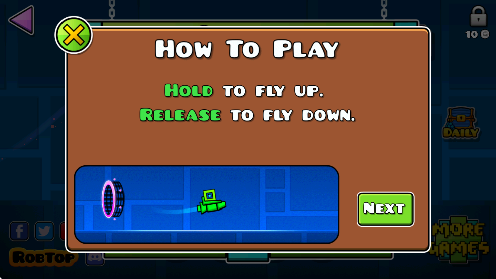 进入游戏前,你必须先要确定自己是否准备完毕了,因为一进入游戏中,你就得做好让方块跳跃障碍物的准备,有人会说缓不过神来的话可以先暂停一下子,但当你按了暂停键后你就会发现你完全看不见方块和障碍、的位置。因此小编认为,在不必要的情况下,尽量不要暂停键,不然继续游戏的那一瞬间,可能就是你重新游戏的时候了。