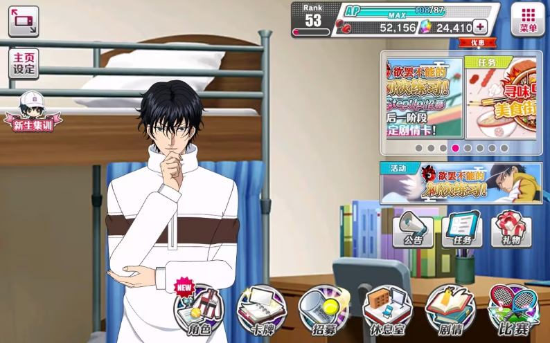 新网球王子是以经典动漫《网球王子》为背景的体育竞技游戏,玩家扮演动漫角色体验紧张刺激网球比赛、重温经典剧情,其采用精美画面与流畅操作,还原动漫经典场景和人物形象,有丰富比赛模式与角色养成系统,玩家可提升实力挑战更强对手,单人剧情或多人竞技模式都能让玩家感受网球魅力,还加入创新玩法和互动元素带来全新体验
