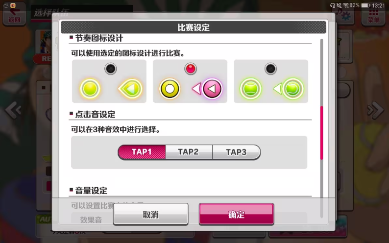 2、编队:相信大家都注意到了,什么颜色的卡打什么颜色的歌分数高,根据不同选手的技能编队。