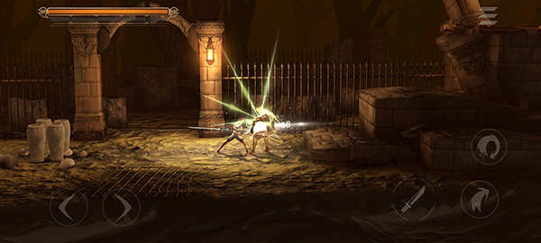 4、其整体操作与横板闯关游戏类似,左边控制移动方向,右边控制攻击、跳跃、冲刺等。