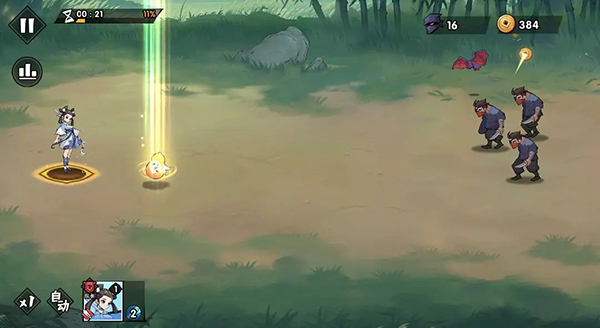 4、第2个侠客伙伴的召唤选择也比较关键,选择什么侠客则视战场情况而定:如果频频有小怪近身打乱输出节奏,可出[力];如果敌方人数太多,输出清不过来,则优先出“气”或“剑”。