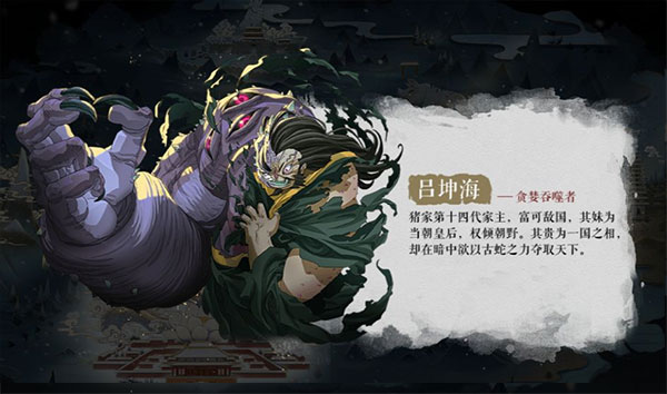 猪家之主吕坤海性格奸诈狠毒,虽然权势滔天仅次于武帝,但一直都有谋朝篡逆之心。然而暖雪的出现阻断了他的谋反之路,眼见篡位无望,他竟缩居家宅整日以残杀弱小女子为乐,成为了比邪魔异鬼更让人丧胆亡魂的存在。