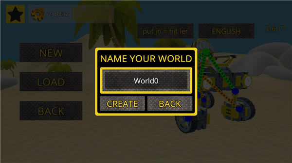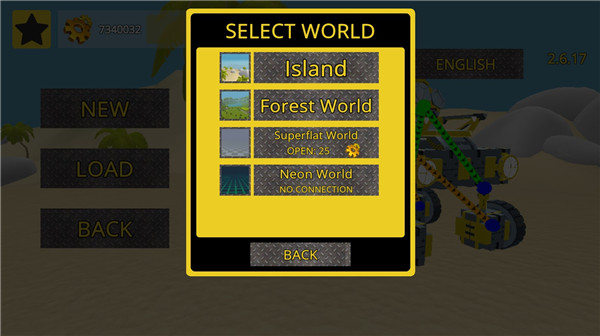 1、下载进入万物创造沙盒机械师,点击SANDBOX开始游戏;