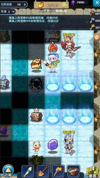 尽早整一只爬塔宠(处女)能让你刷塔获得不少资源,开局后爬塔现在底层刷生活技能等级,生活5级后就可以到90以上刷,嫖大金块、ss宠、材料。
