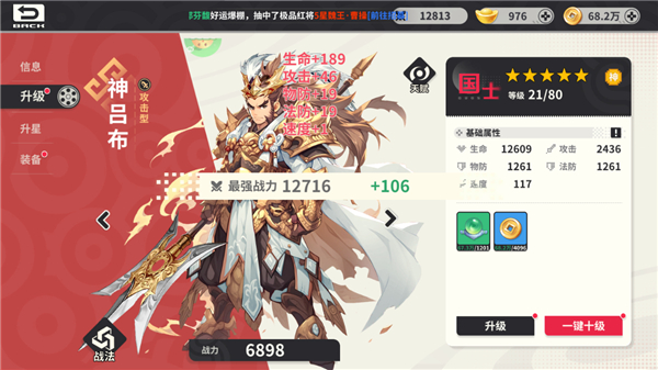 1. 多维度武将培养系统:包含等级、星级、技能、装备、天赋五重成长线。