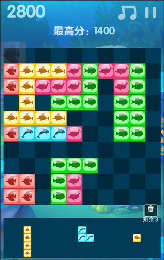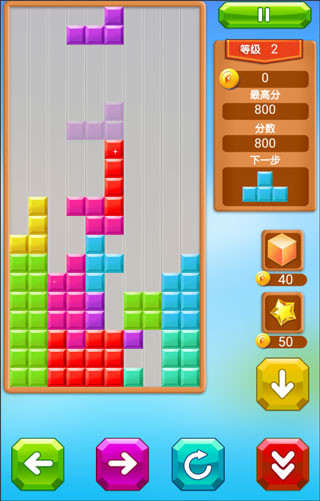 将下方各种各样形状的方块,方到选框内横竖排满即可得分,方不下即是失败