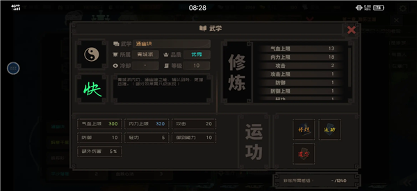 不同内功增加属性不一样,具体可点击查看,使用的武学和内功最好是相同属性,可以发挥武学最大效果,根据自己爱好搭配,不运功的内功,只能享受它右边框带来的属性加成。