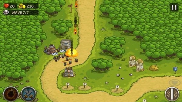 ◆ 弓箭塔:每个弓箭塔70金币,每个塔有两名弓箭手。造成的伤害大于兵营战士小于其他塔,但是攻速比较快,打击单个敌人比较实用。