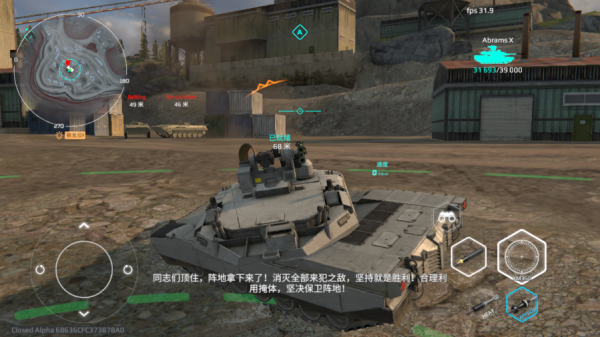 1、点击操作杆控制好坦克的移动,踩下油门快速冲刺,到达战场就能挑战。