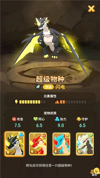 龙蛋:(孵化后可获得任意一只超级物种—闪电)