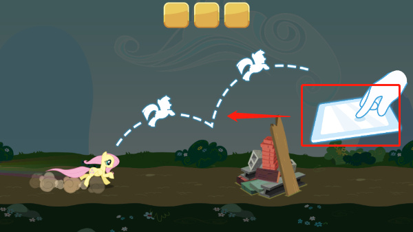 4、长按屏幕可控制小马进行更加长距离的跳跃;