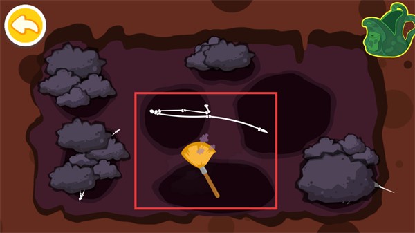 2、使用【扫帚】类工具清理挖掘区域的杂物,进一步露出更多【化石部件】,提升考古挖掘进度,助力后续恐龙骨骼复原。