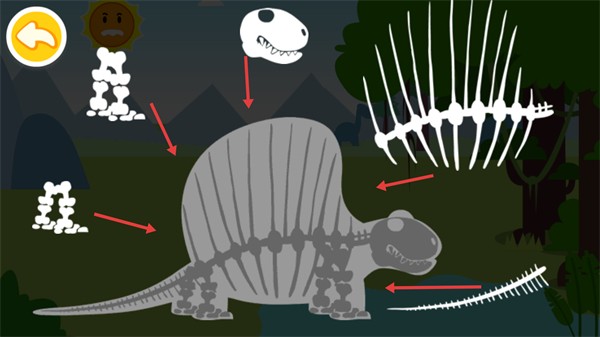 3、将挖掘出的不同【恐龙骨骼】部件,按恐龙身体构造对应拼接,完成恐龙骨架复原,是了解恐龙结构的关键步骤。