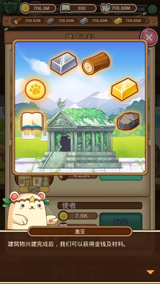 通过任务来改善和经营你的宏伟村落;获得金币和棒棒糖去招募新伙伴,升级建筑带来更多的收入。