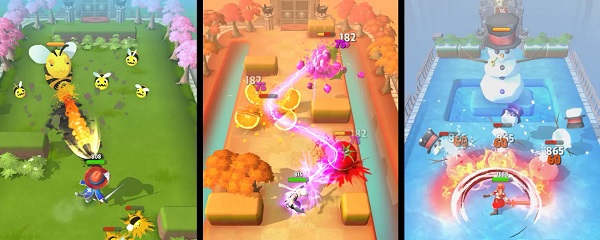 《弓箭传说》主攻击以“射箭”为主,技能的变化有五花八门的弹幕式射击方法,你只要找到最佳的地方,当角色停止移动时,就会开始原地攻击怪物。