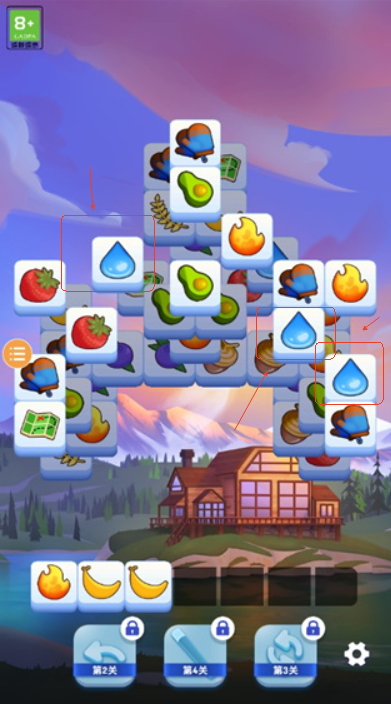然后玩家需要把三个相同物品的方块放入下方的七卡槽中,进行消除