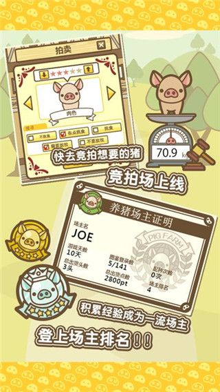 多种游戏设置,猪猪狩猎场增加了游戏趣味性,还有世界猪场竞争排名,看看谁家的猪更多更值钱。