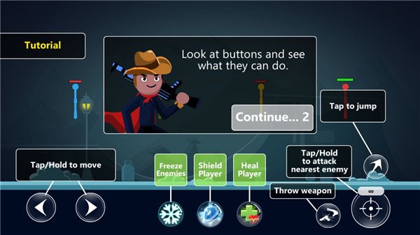 4、只有攻击、跳跃以及左右方向键,操作比较简单,不需刻意的瞄准,无脑射击就行。