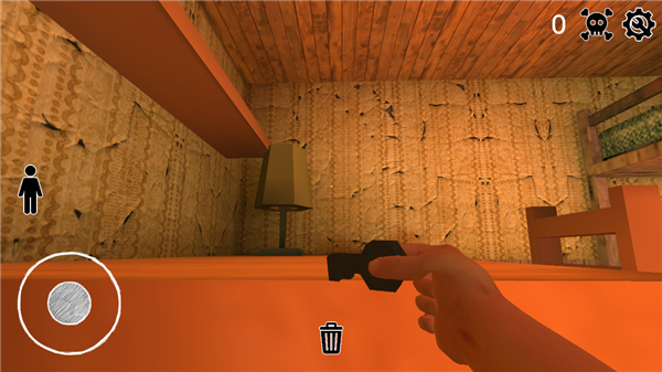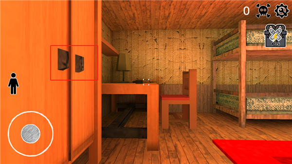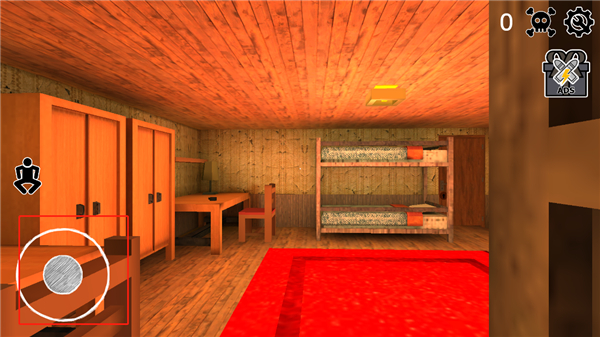5、进入游戏后,我们在一个房间里面,玩家需要躲避开爷爷奶奶逃离这个房间,左手控制角色移动,右手滑动屏幕调整视角;