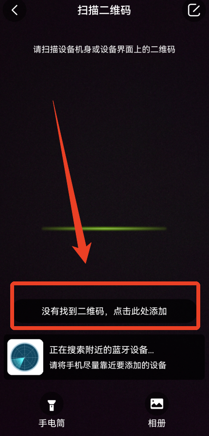2、第一种方法不行的话就点击扫码界面上的【没有找到二维码,点击此处添加】。有很多其他可以连接的方法。