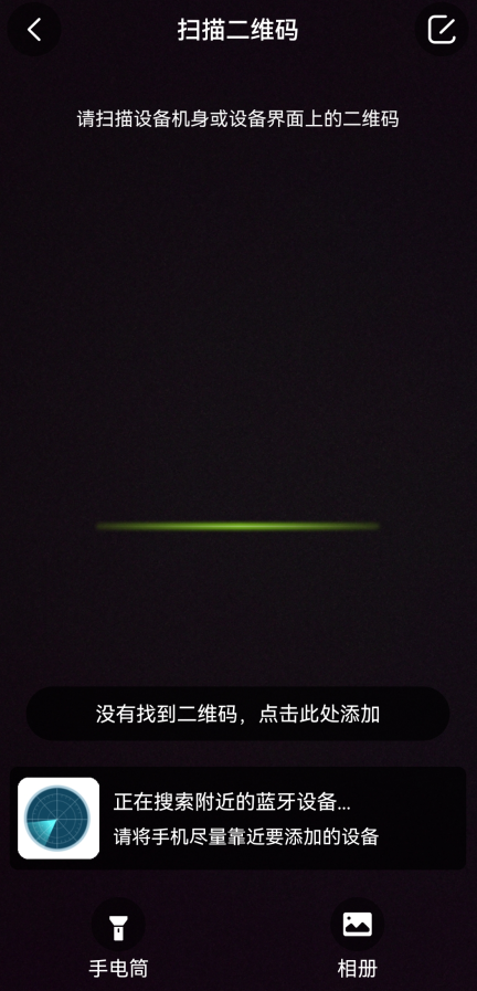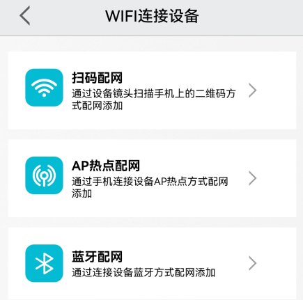 1)扫码配网,通过设备镜头扫描手机上的二维码方式配网添加。