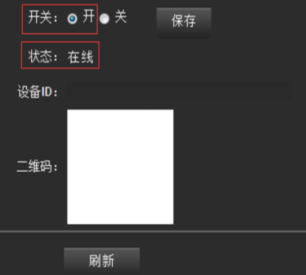 3)打开平台开关,刷新设备状态,知道状态显示“在线”,然后直接扫描下方的二维码即可。