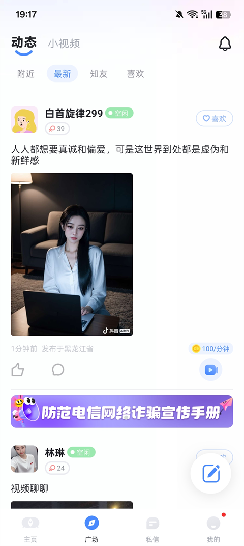 【附近的人】:私聊互动,动态分享,聊你想聊的