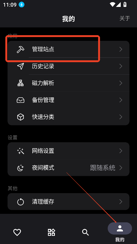 进入首页,点击我的,选择管理站点