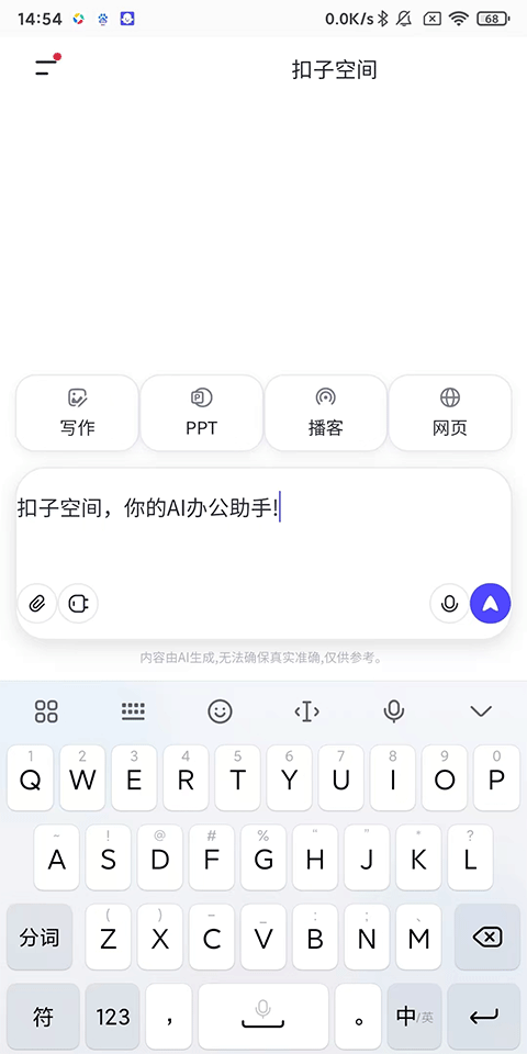 1、软件集合了聊天、搜索、翻译、创作等多种功能,满足用户在不同场景下的需求。