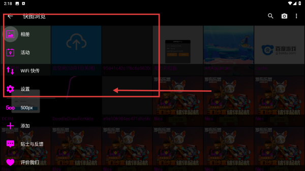 1. 开启快图浏览,轻点左上角带有三条横线图标的菜单按钮,此时会弹出功能菜单。