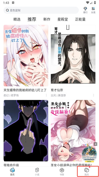 1、首先打开哔哩唑哩漫画,进入到首页中后我们点击右下角的【我的】;