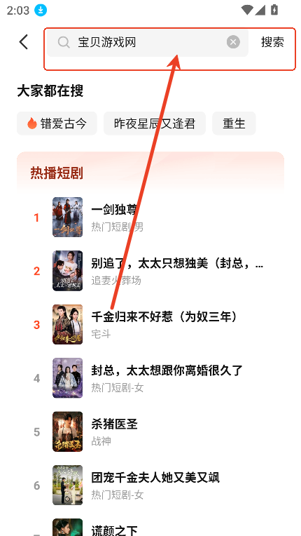 2、上方搜索框,还能够精准检索喜欢的短剧内容