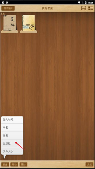3、回到主界面,可按书名、作者、加入时间进行排序;