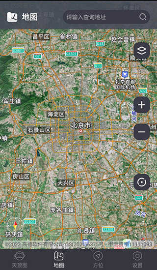 用户点击地图,可以查看自己位置的卫星地图,并且可以精确到用户当前的位置,点击上方搜索框还可以自己搜索位置。