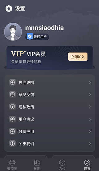 用户点击右下角设置可以进入个人中心,查看软件信息以及校准说明。