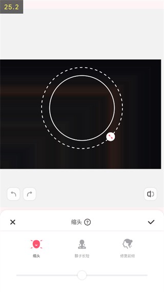3、在图片中选择缩头的范围,然后向右拖动进度条就可以进行瘦脸了。